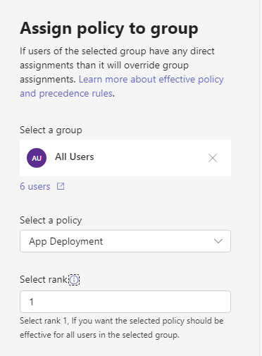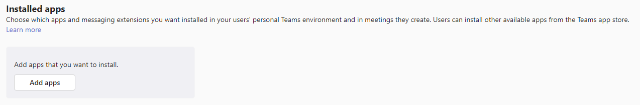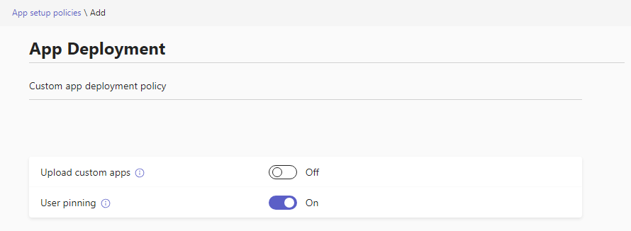 Individual installs are alright for testing, but what if we want to deploy this to all our internal users at once (or to a client)? We can utilize Teams policies to accomplish this goal.